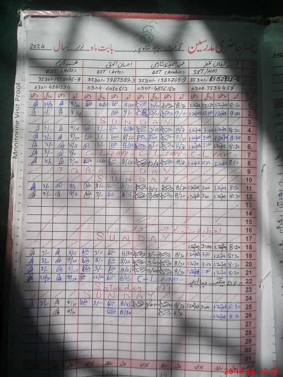| CNIC | Full Name | Designation | R/C | Absence During Last Calender Month |