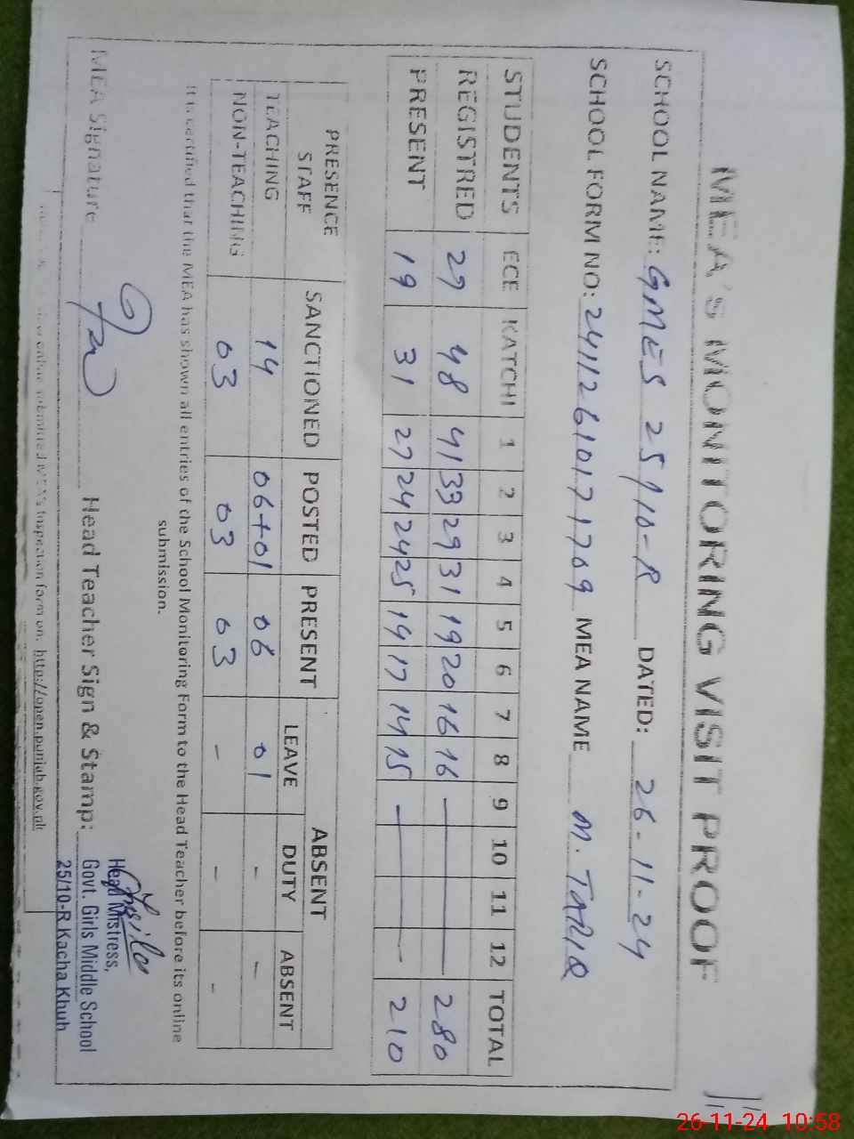 | EMIS Code: 36420113 | Name of School: GMES 25/10-R, KACHA KHUH | |||