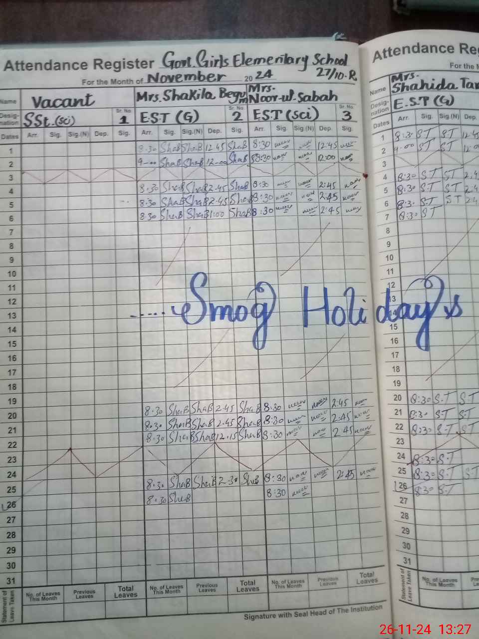 | Leave | Duty | Absent | Maternity | Medical | Ex- Pak |