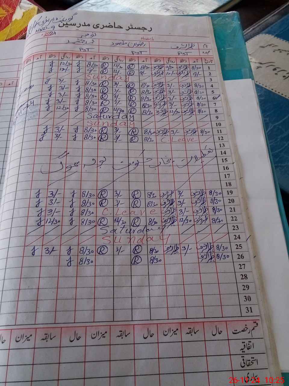 | CNIC | Full Name | Designation | R/C | Absence During Last Calender Month |