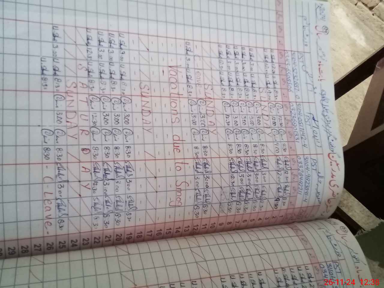 | Leave | Duty | Absent | Maternity | Medical | Ex- Pak |