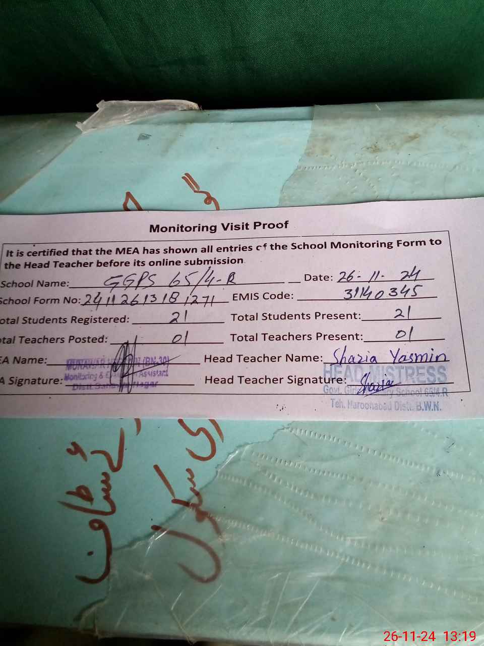 | EMIS Code: 31140345 | Name of School: GGPS CHAK NO. 65/4-R | |||