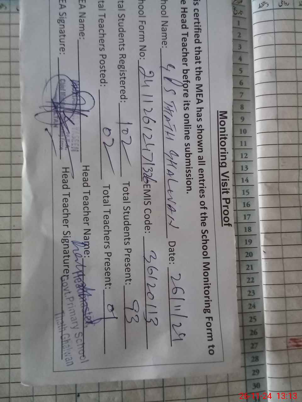 | EMIS Code: 36120113 | Name of School: GPS THATH GHALWAN P/O THATH GHAWAN | |||