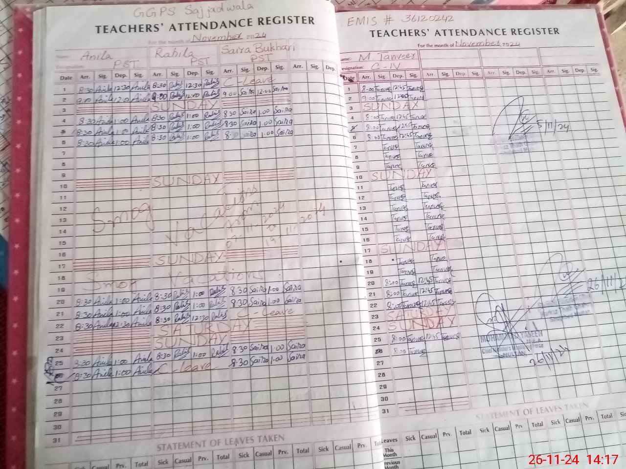 | Attendance Register | Head Teacher | MEA with School | Visit Proof |