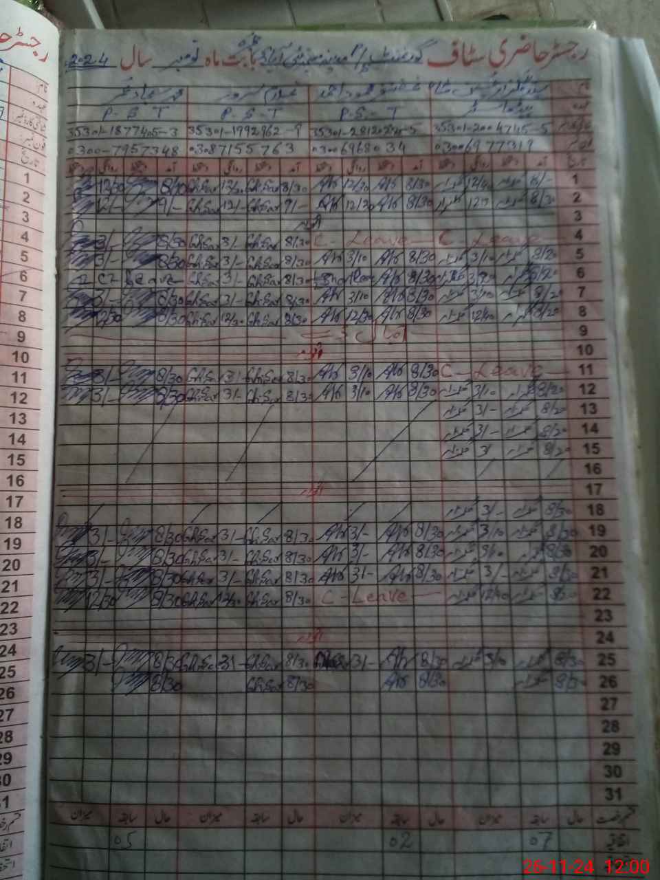 | CNIC | Full Name | Designation | R/C | Absence during last cal. month |
