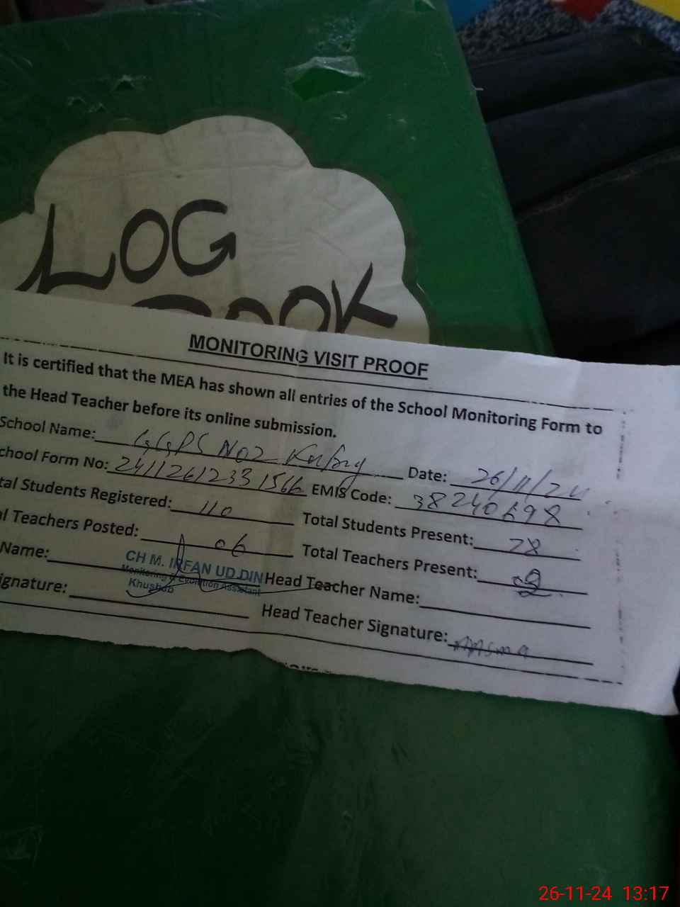 | Attendance Register | Head Teacher | MEA with School | Visit Proof |