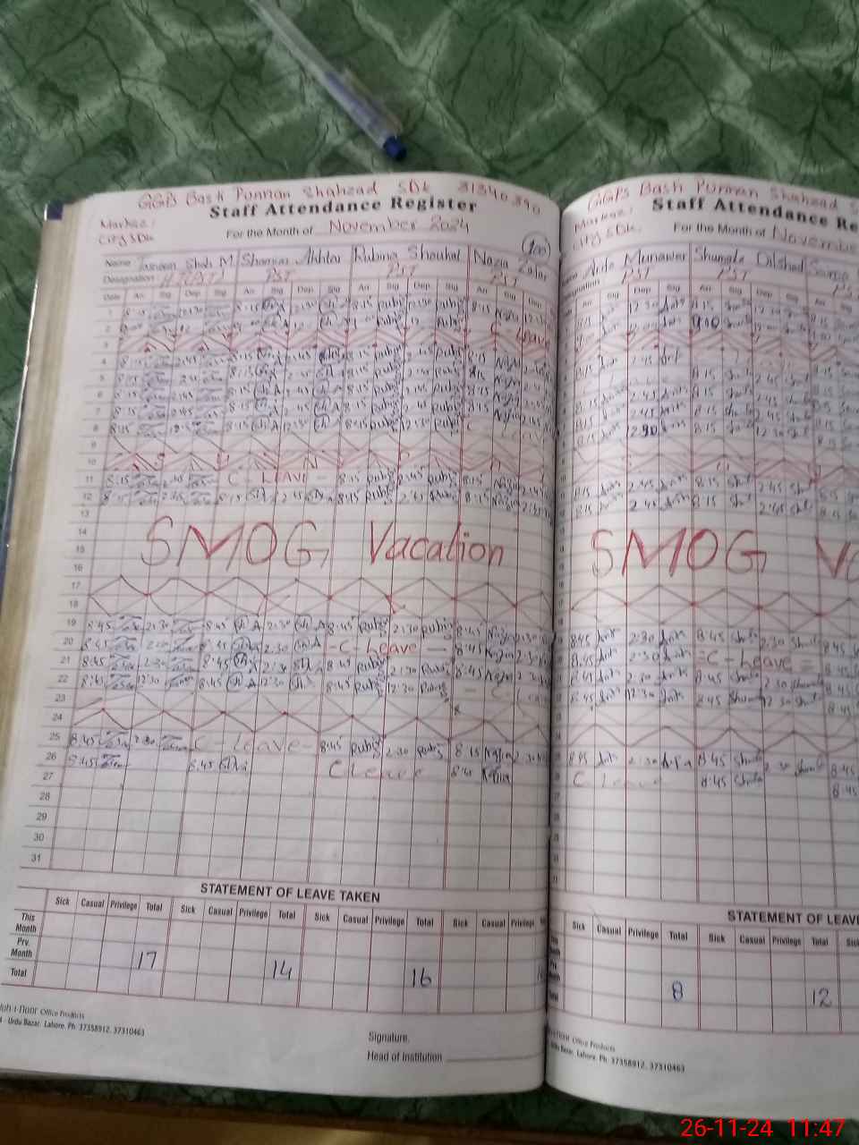 | Leave | Duty | Absent | Maternity | Medical | Ex- Pak |