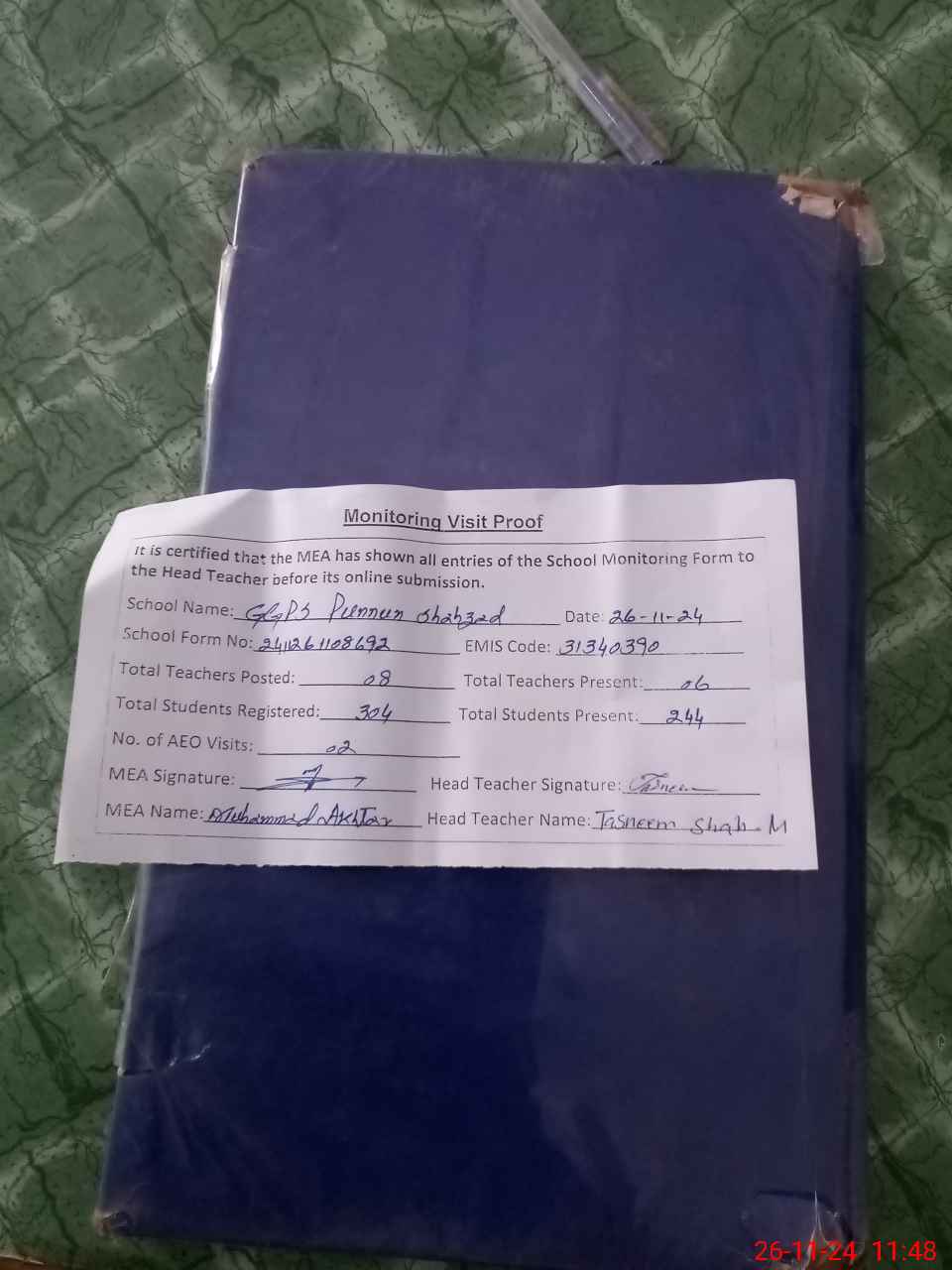 | Attendance Register | Head Teacher | MEA with School | Visit Proof |