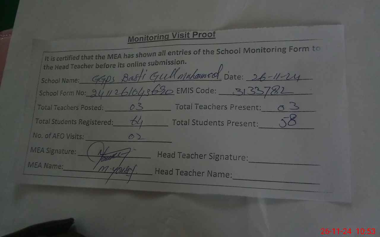 | EMIS Code: 31330782 | Name of School: GGPS BASTI GULL MUHAMMAD | |||