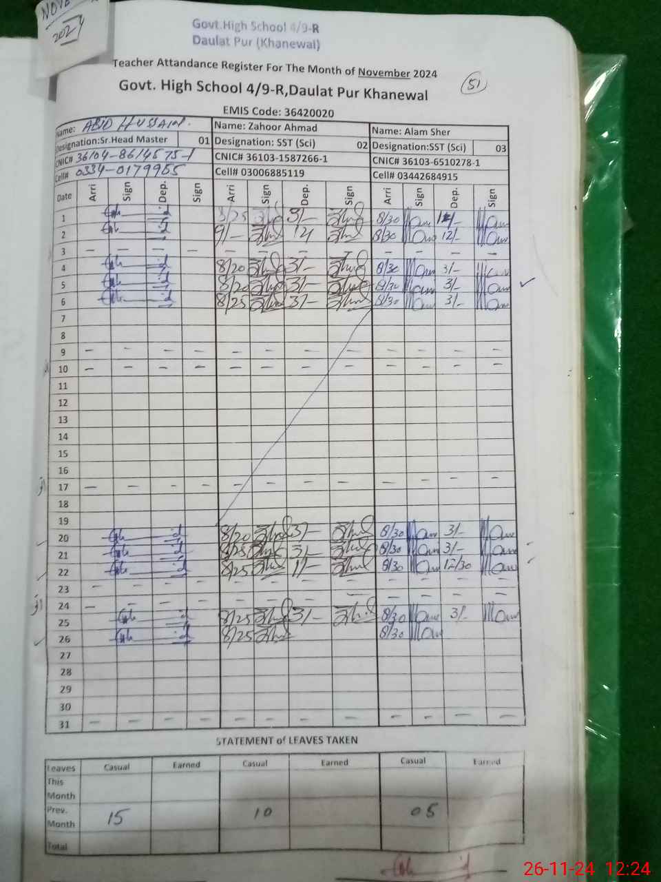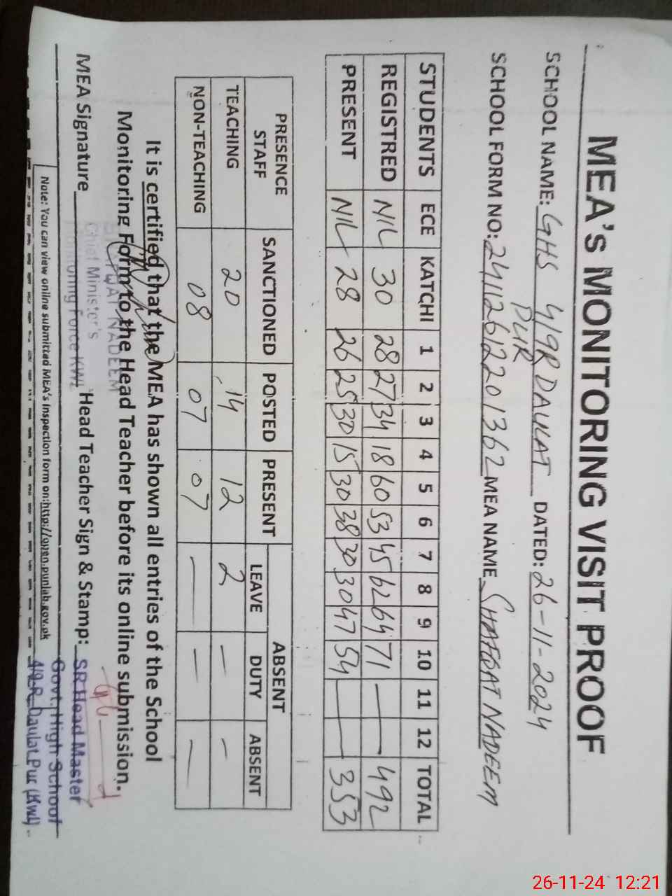 | EMIS Code: 36420020 | Name of School: GHS 4/9-R DAULAT PUR, P/O 7/9-R, KACHA KHUH | |||