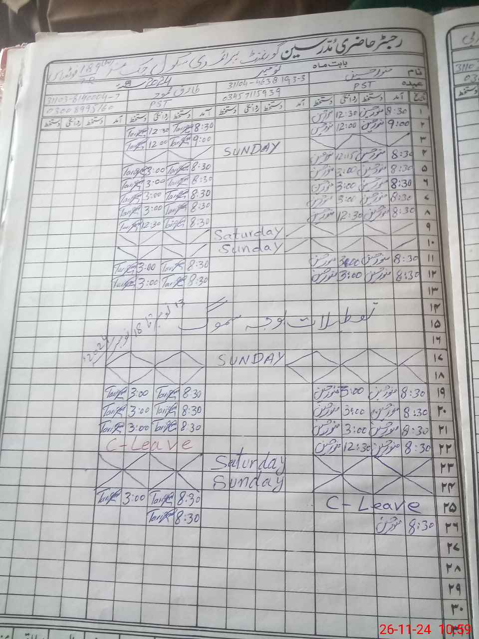 | Name: Mu**** Hu**** Designation: (School Headmaster's/Headmistress's) PST Phone/Cell Number: 03**** |