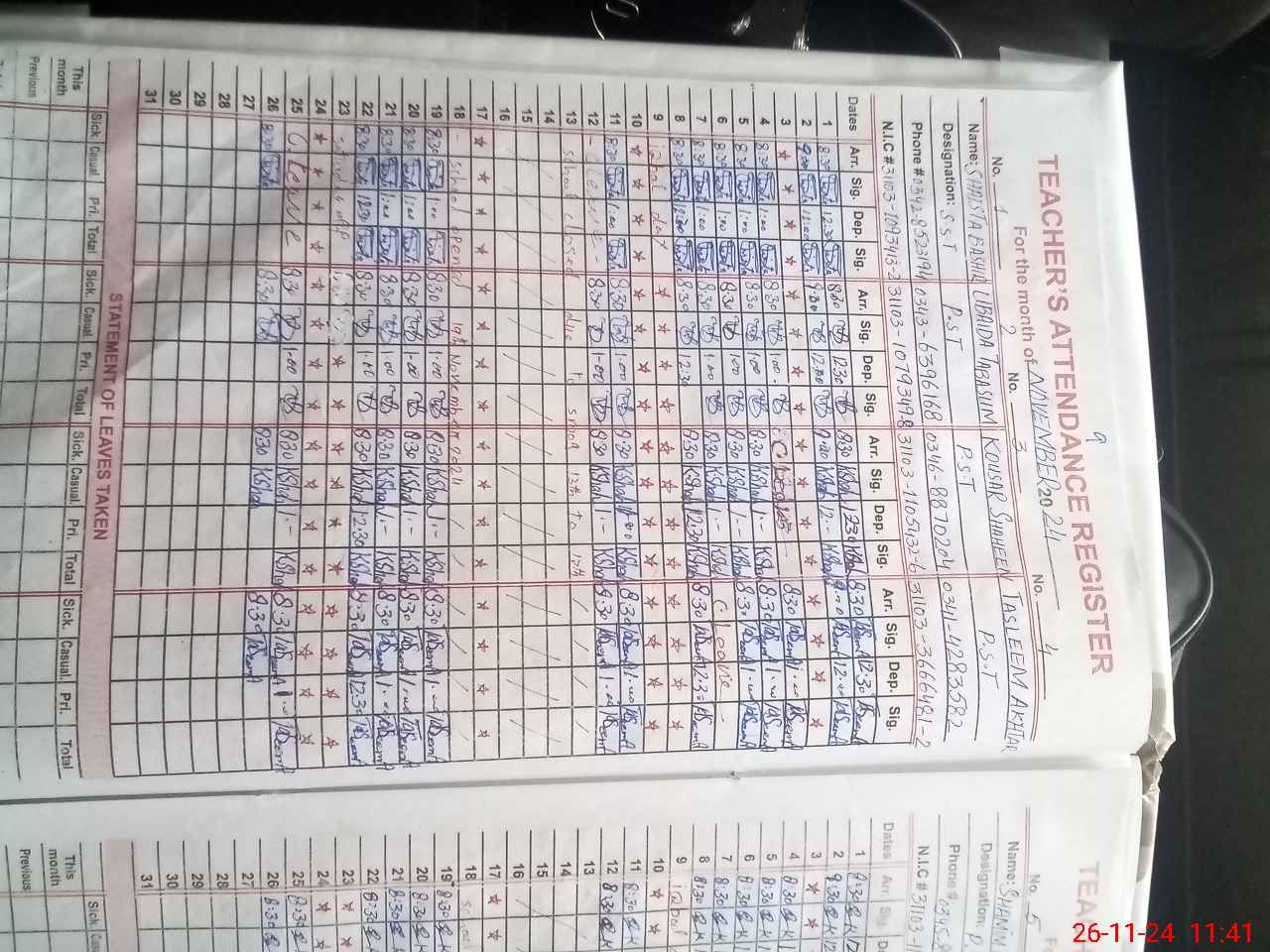 | CNIC | Full Name | Designation | R/C | Absence During Last Calender Month |