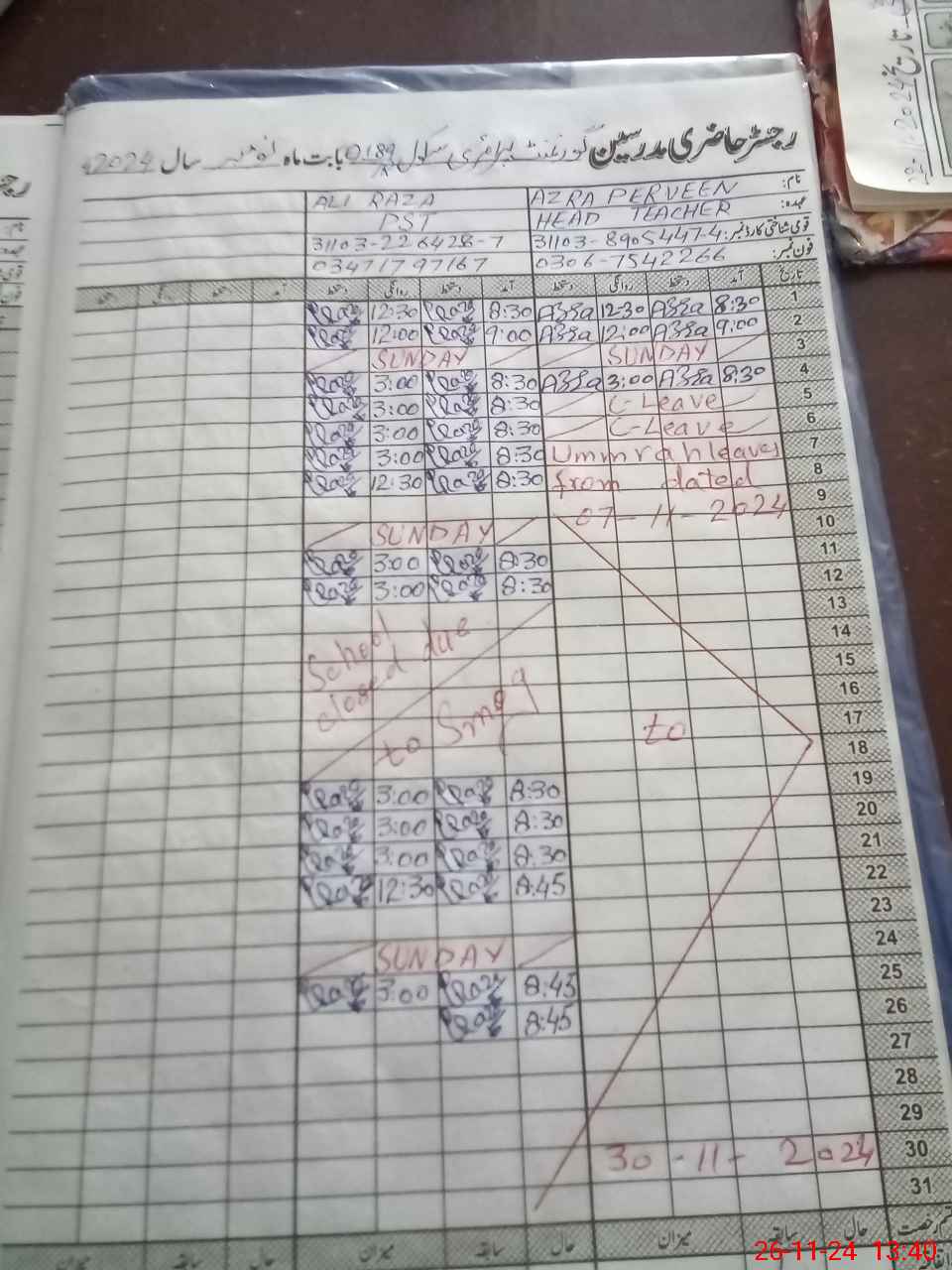 | CNIC | Full Name | Designation | R/C | Absence During Last Calender Month |