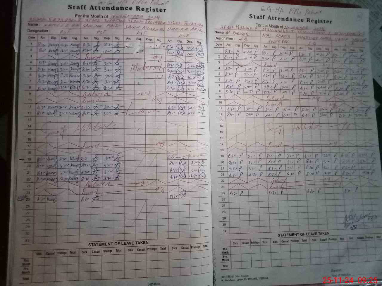 | CNIC | Full Name | Designation | R/C | Absence During Last Calender Month |