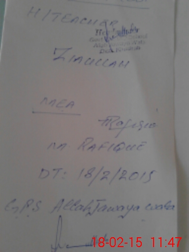 | Name: Aa**** Ra**** Designation: (School Headmaster's/Headmistress's) PST Phone/Cell Number: 03**** |