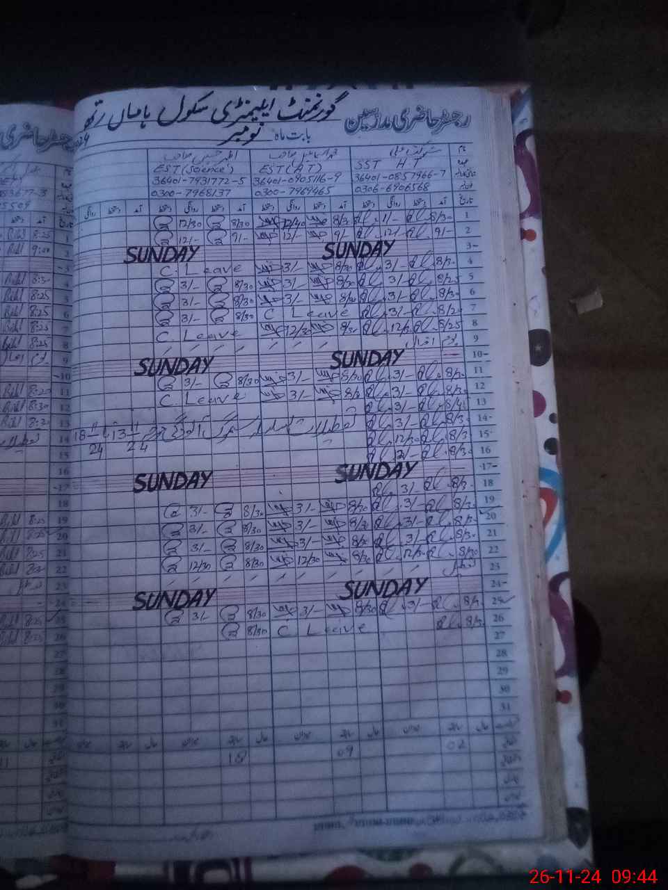 | Name: SH**** AL**** Designation: (School Headmaster's/Headmistress's) S.S.T.(SCIENCE) Phone/Cell Number: 03**** |