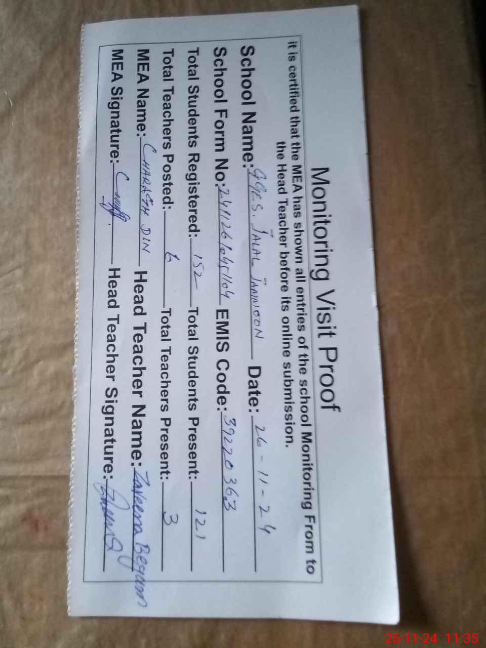 | EMIS Code: 39220363 | Name of School: GGES JALAL JAMMOON POST OFFICE MARI HAZARA | |||