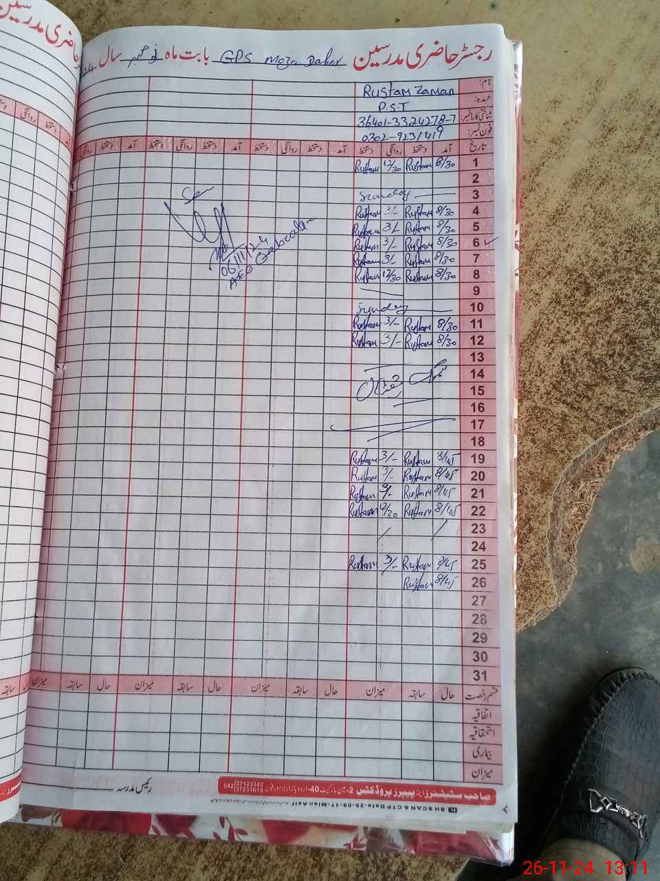 | Name: RU**** ZA**** Designation: (School Headmaster's/Headmistress's) PST Phone/Cell Number: 03**** |