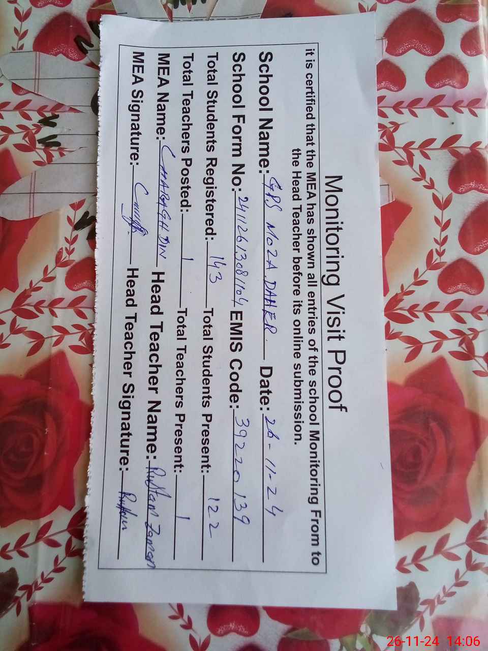 | EMIS Code: 39220139 | Name of School: GPS MOZA DAHER | |||