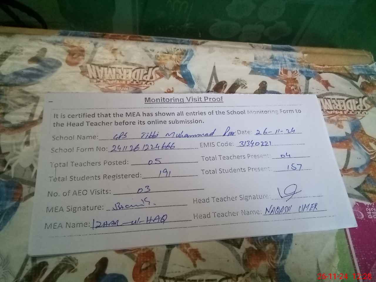 | EMIS Code: 31340221 | Name of School: GPS TIBBI MUHAMMAD PUR | |||
