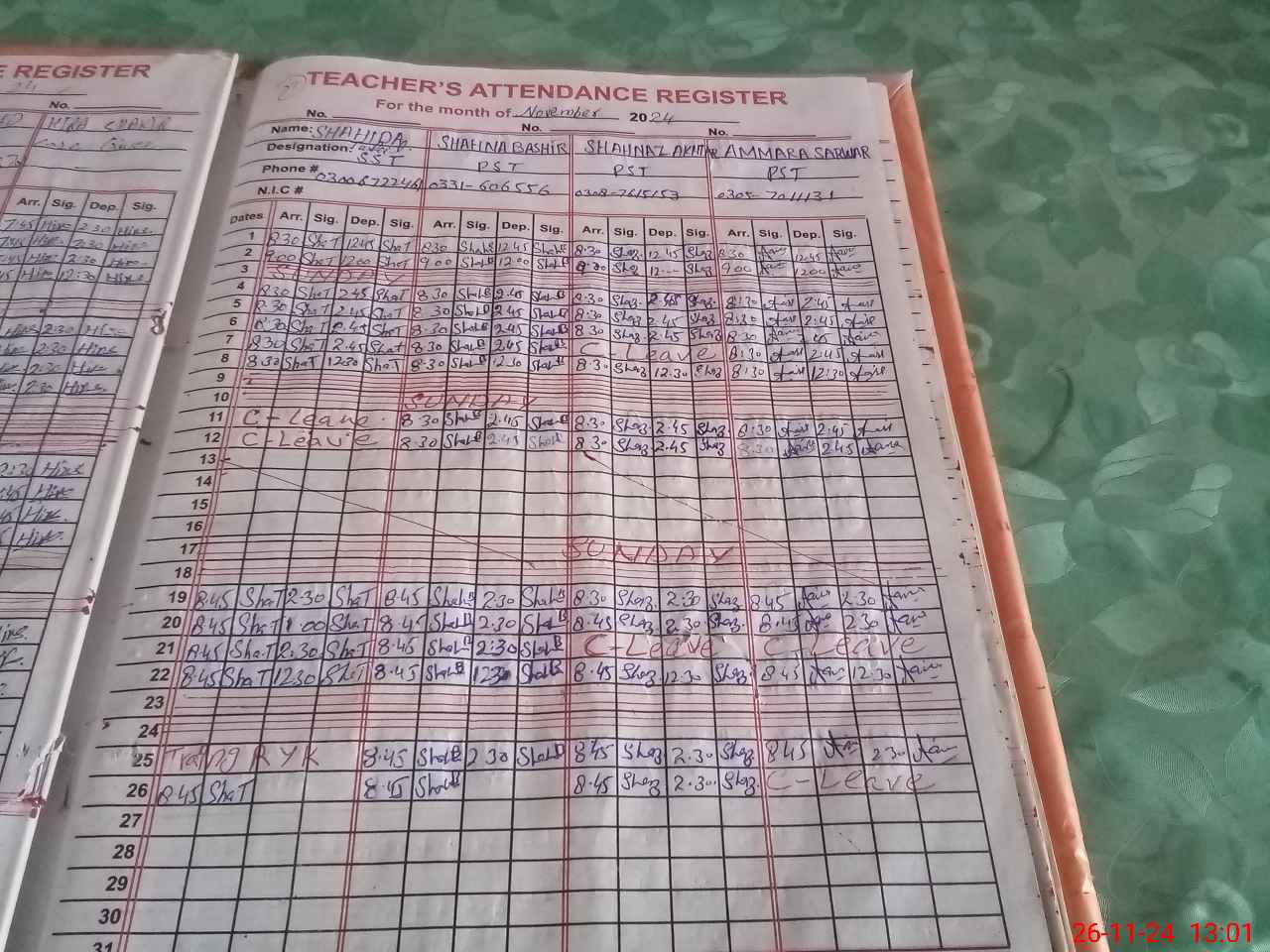 | Name: SH**** TU**** Designation: (School Headmaster's/Headmistress's) S.S.T.(SC) Phone/Cell Number: 03**** |