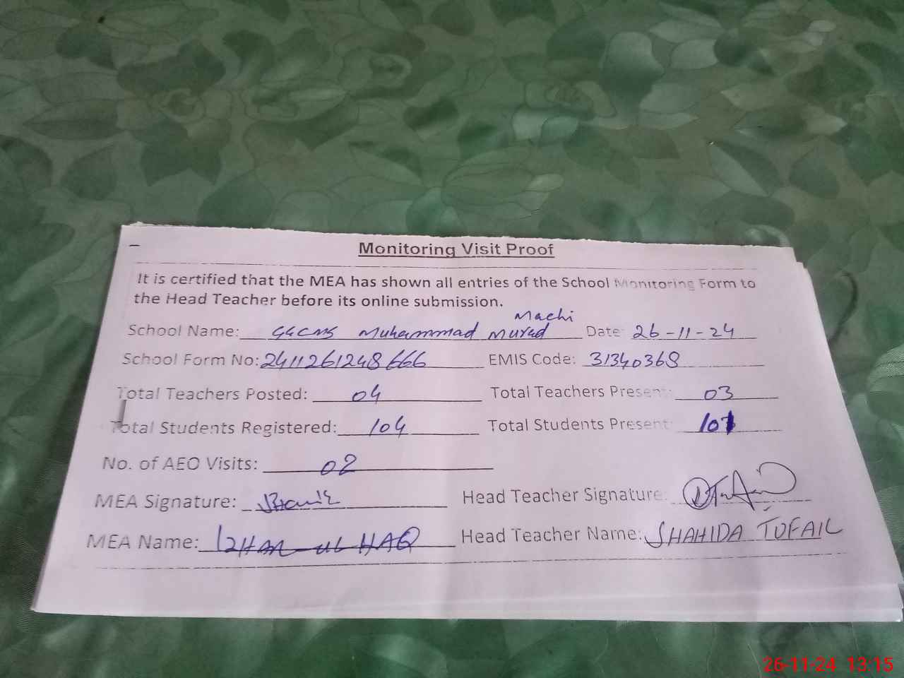 | EMIS Code: 31340368 | Name of School: GGCMS MUHAMMAD MURAD MACHI | |||