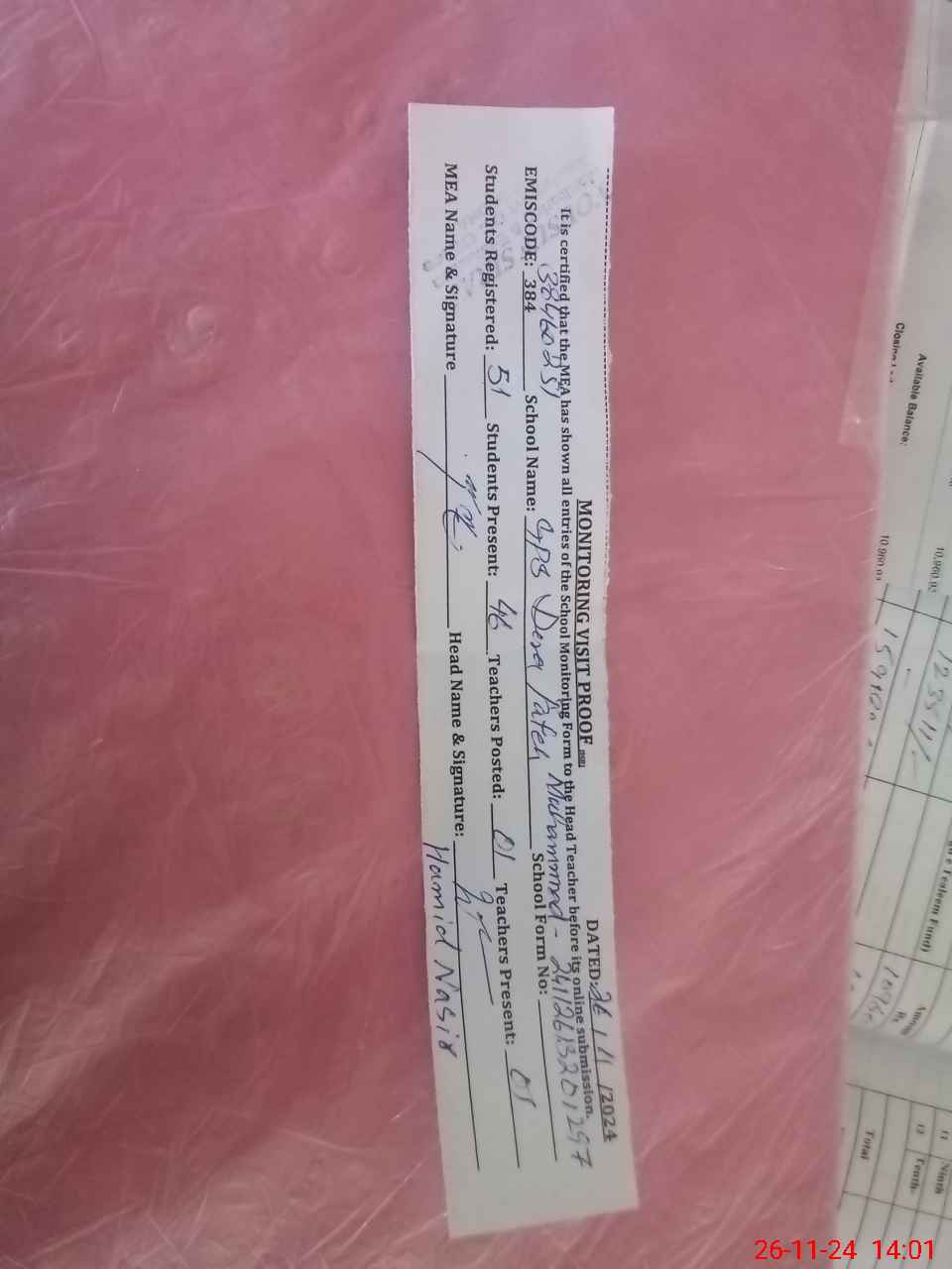 | Certified that this School was Inspected by the Undersigned MEA/DMO Today and the Information Stated Above is as Per Record. | |||||