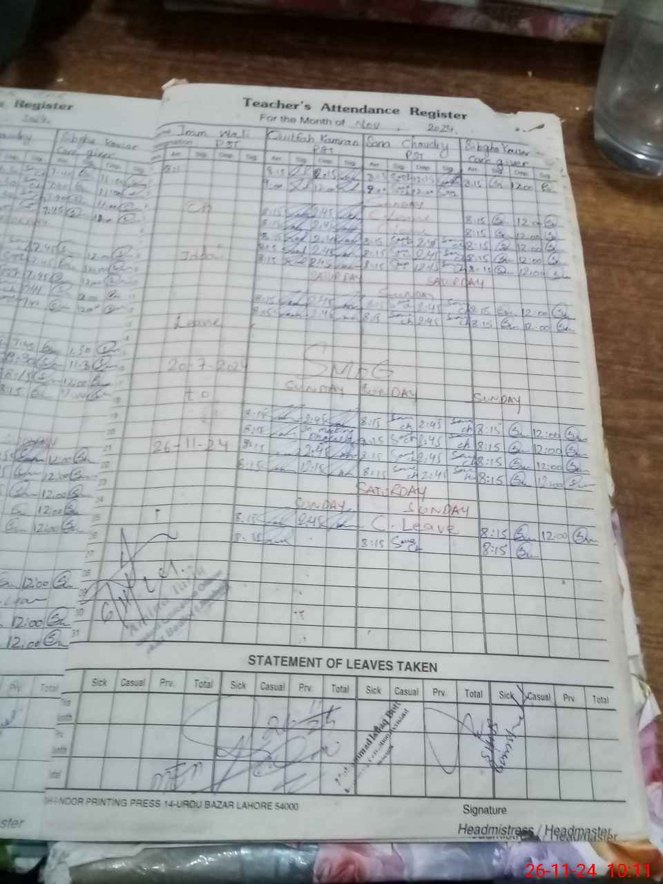 | CNIC | Full Name | Designation | R/C | Absence During Last Calender Month |