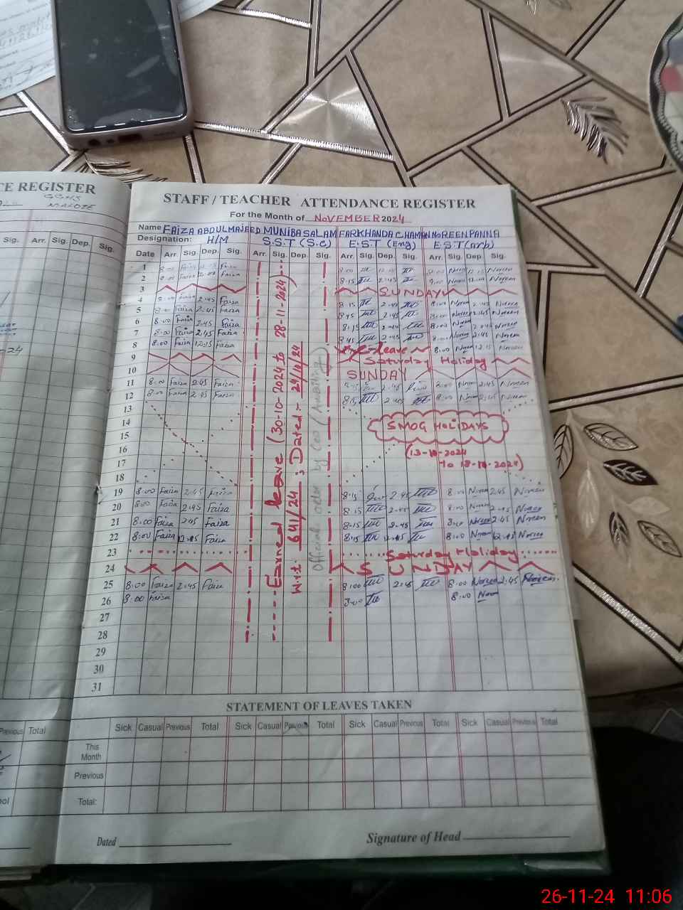 | 37**** | Kh**** Gh**** | PST | Regular | 31 | 0 | 0 | 31 | 0 | 0 | 0 | 0 | 0 | Maternity |