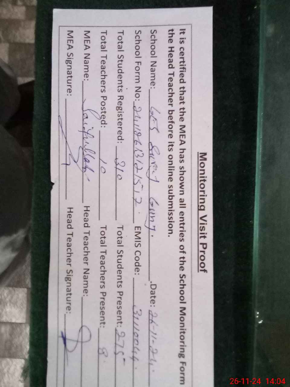 | Certified that this School was Inspected by the Undersigned MEA/DMO Today and the Information Stated Above is as Per Record. | |||||
