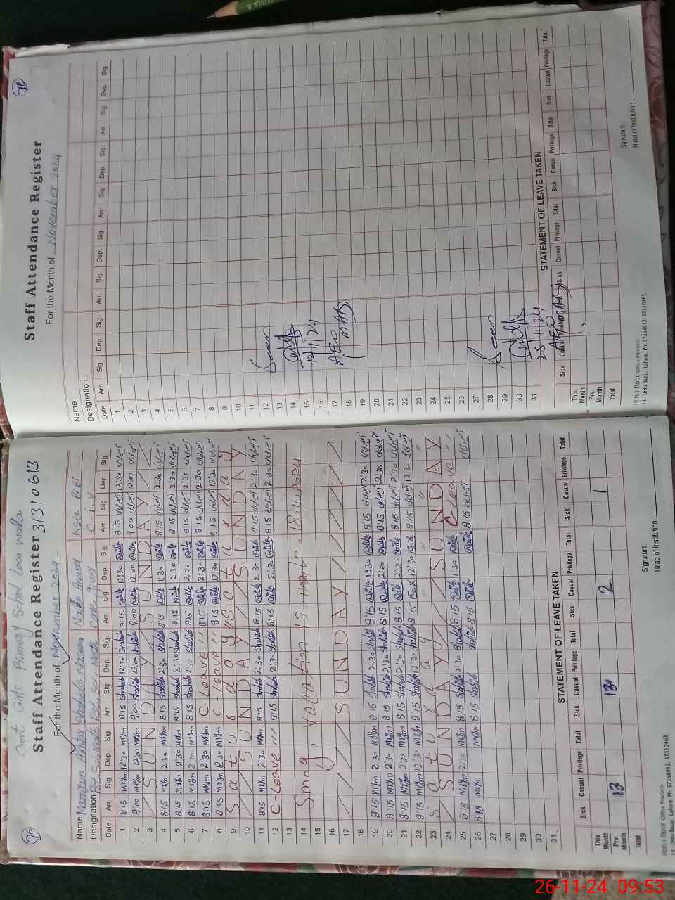 | Name: Sh**** Na**** Designation: (School Headmaster's/Headmistress's) PST Phone/Cell Number: 03**** |