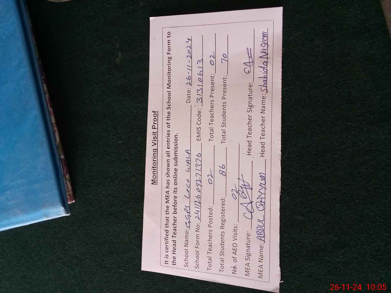 | EMIS Code: 31310613 | Name of School: GGPS LOCO WALA BASTI AZIZ ABAD | |||