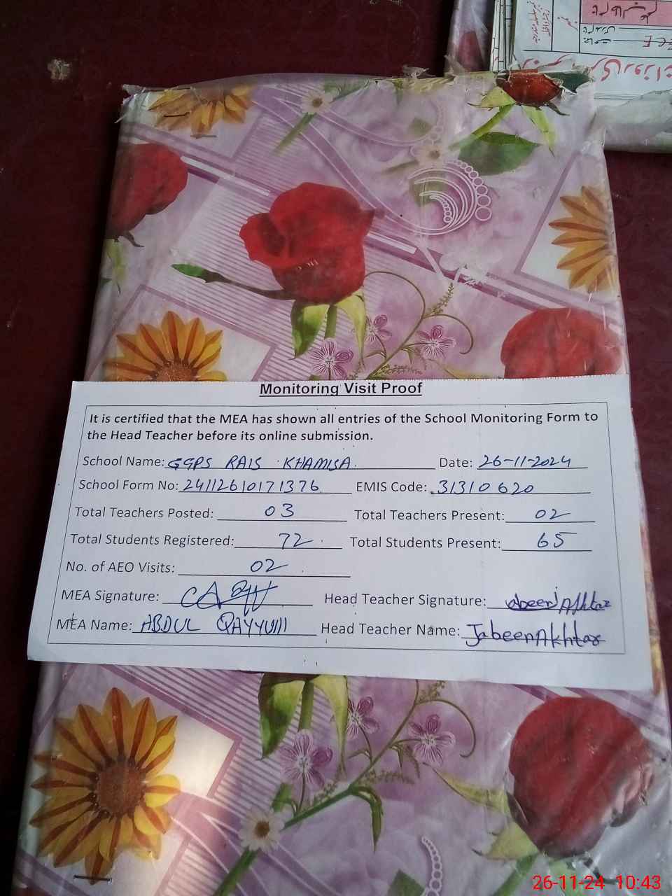 | EMIS Code: 31310620 | Name of School: GGPS RAIS KHAMISA | |||