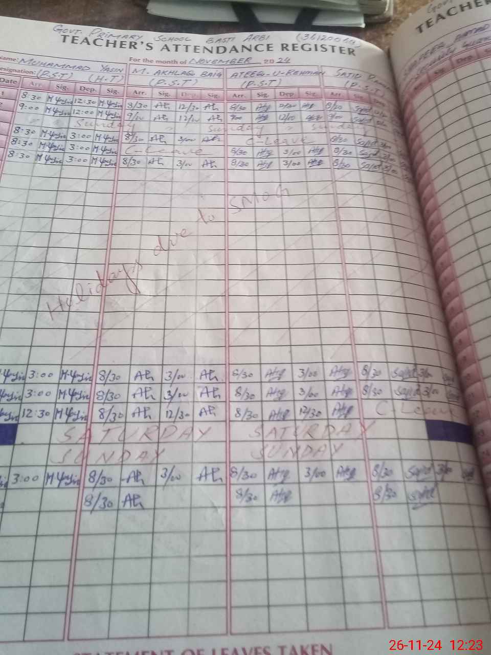 | CNIC | Full Name | Designation | R/C | Absence During Last Calender Month |