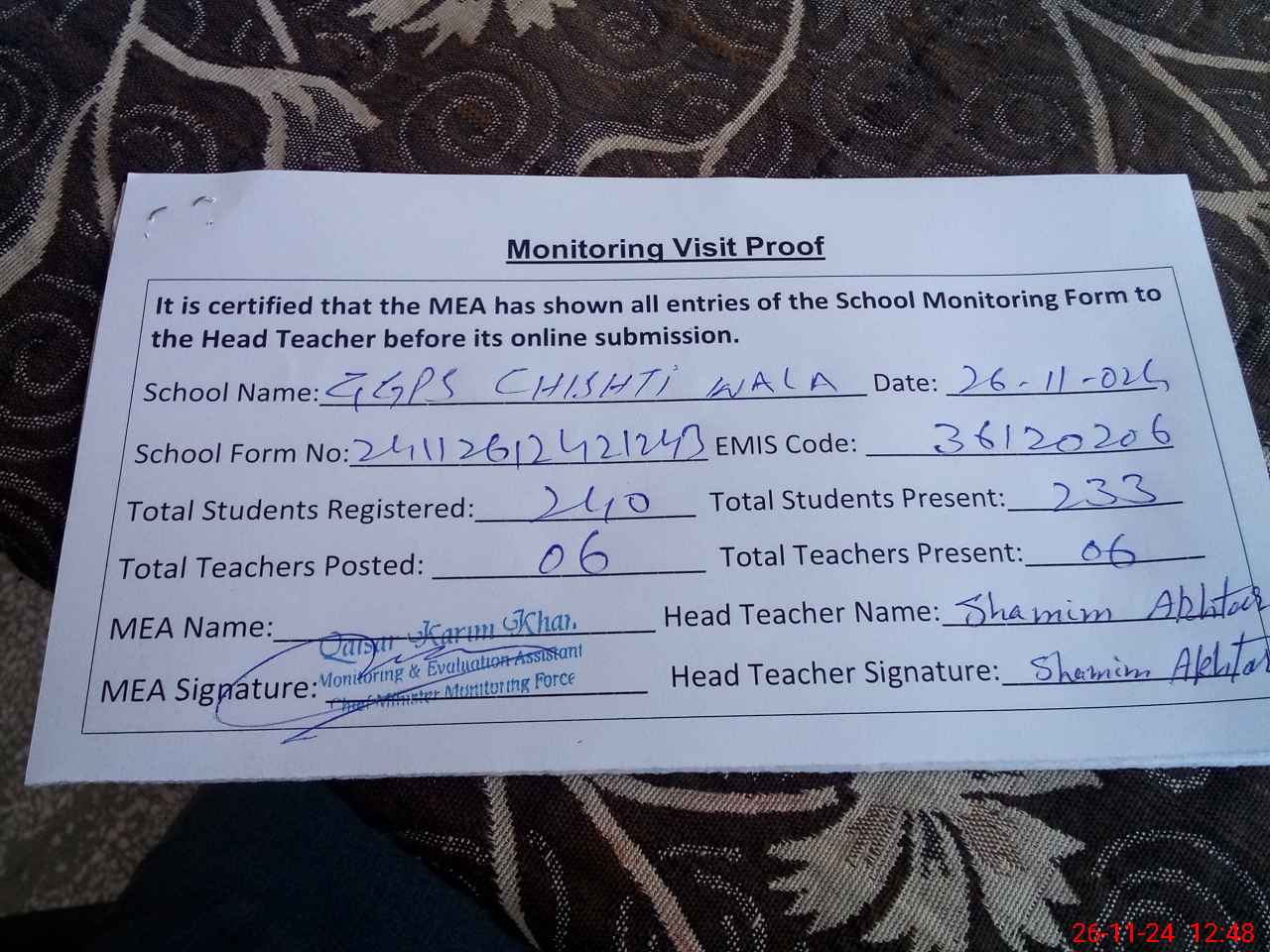 | EMIS Code: 36120206 | Name of School: GGPS CHISHTI WALA SHUJABAD | |||