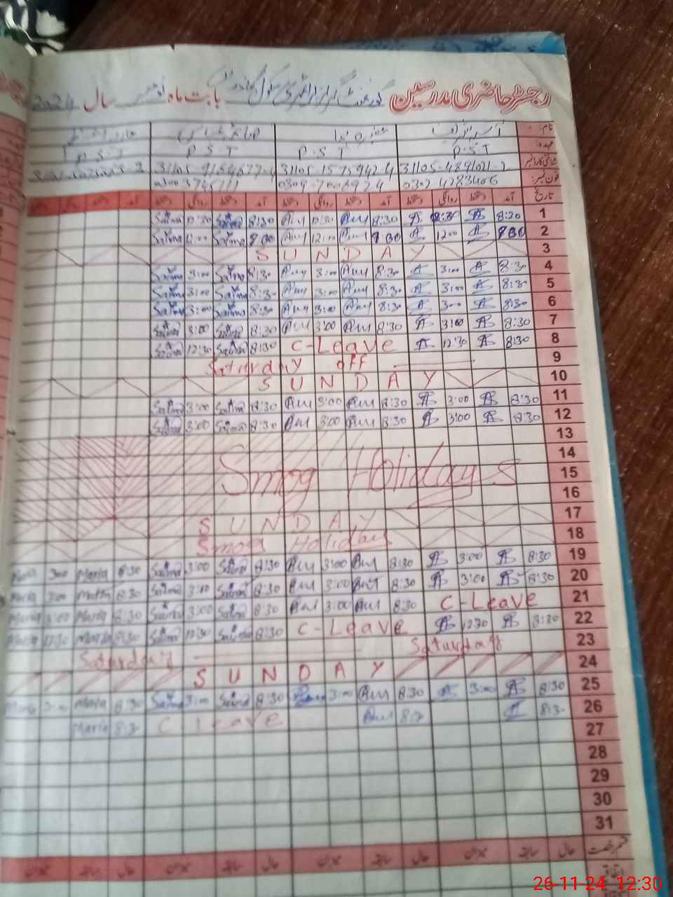 | Leave | Duty | Absent | Maternity | Medical | Ex- Pak |
