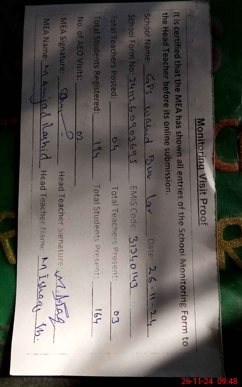 | EMIS Code: 31340143 | Name of School: GPS WAHID BUX LAR | |||