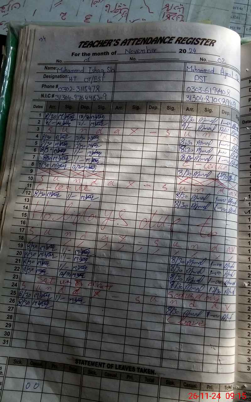 | CNIC | Full Name | Designation | R/C | Absence During Last Calender Month |