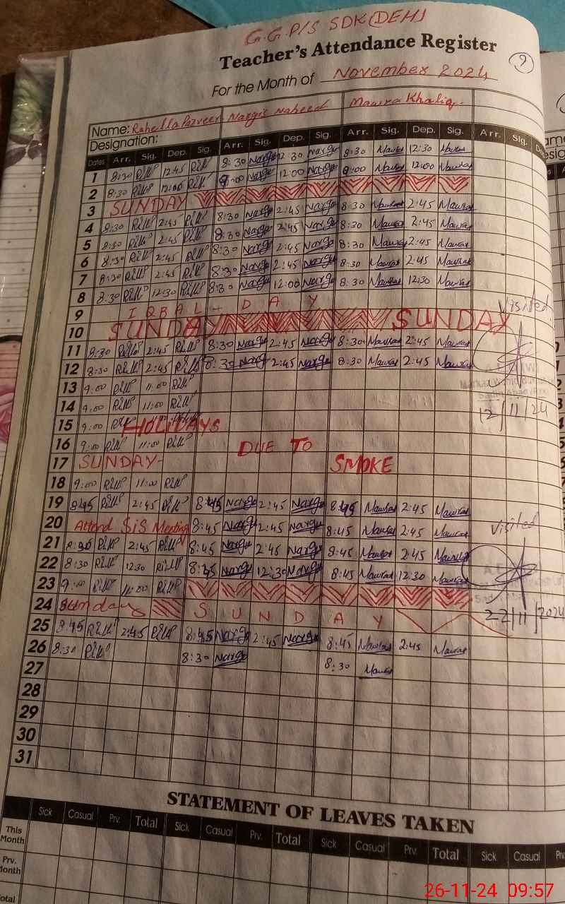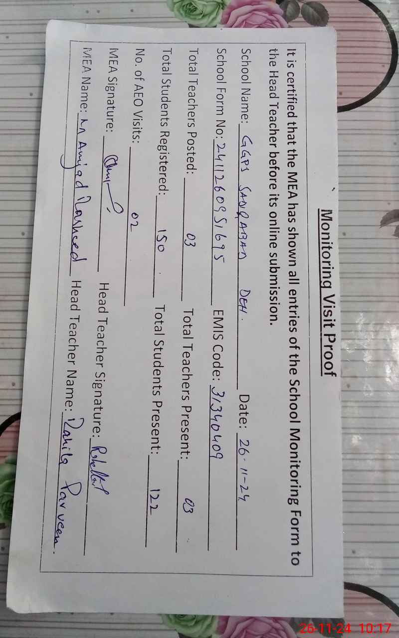 | Attendance Register | Head Teacher | MEA with School | Visit Proof |