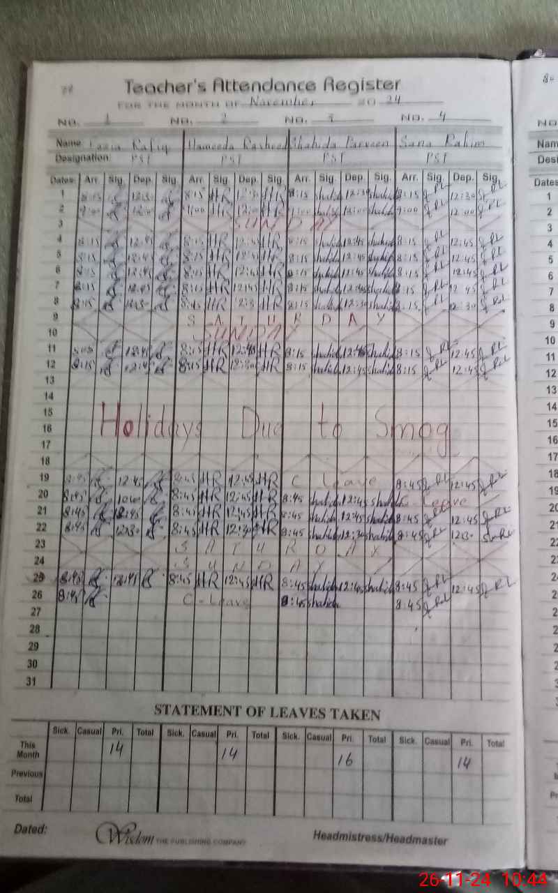 | Leave | Duty | Absent | Maternity | Medical | Ex- Pak |