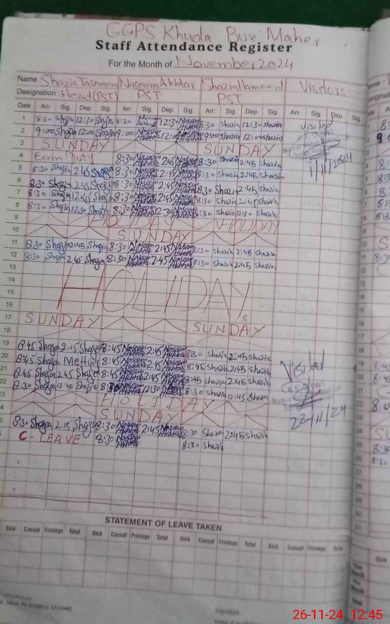| Name: SH**** TA**** Designation: (School Headmaster's/Headmistress's) PST/PTC/JV Phone/Cell Number: 03**** |