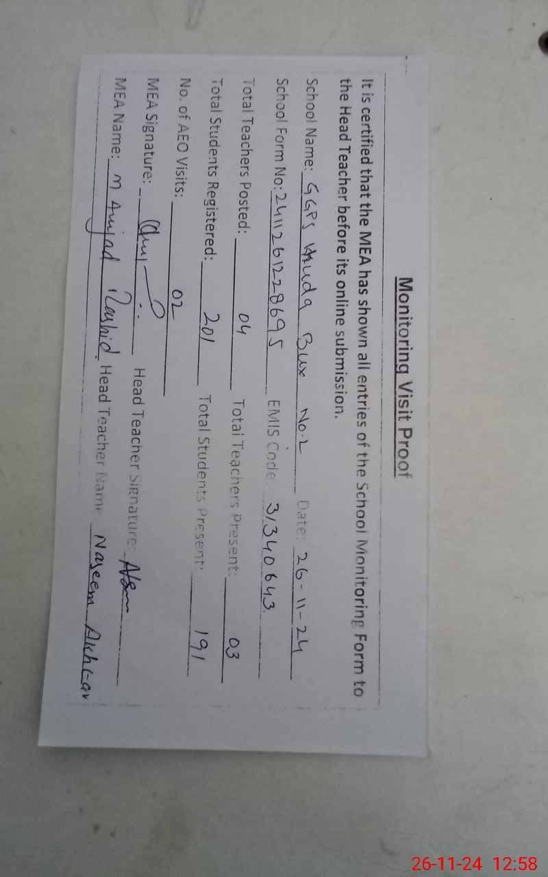 | EMIS Code: 31340643 | Name of School: GGPS KHUDA BUX MEHAR NO .2 | |||