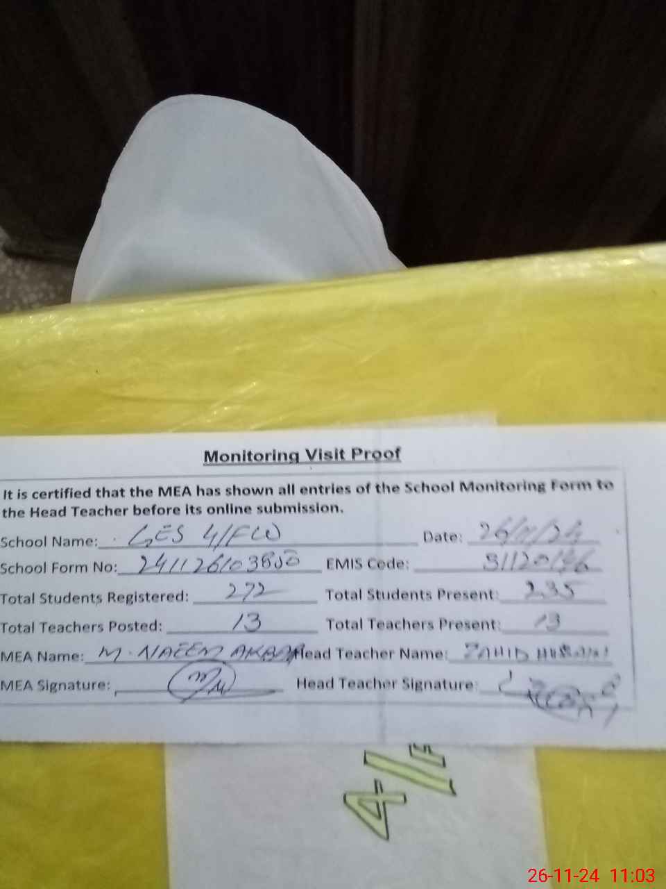 | EMIS Code: 31120146 | Name of School: GES CHAK 4/FW | |||