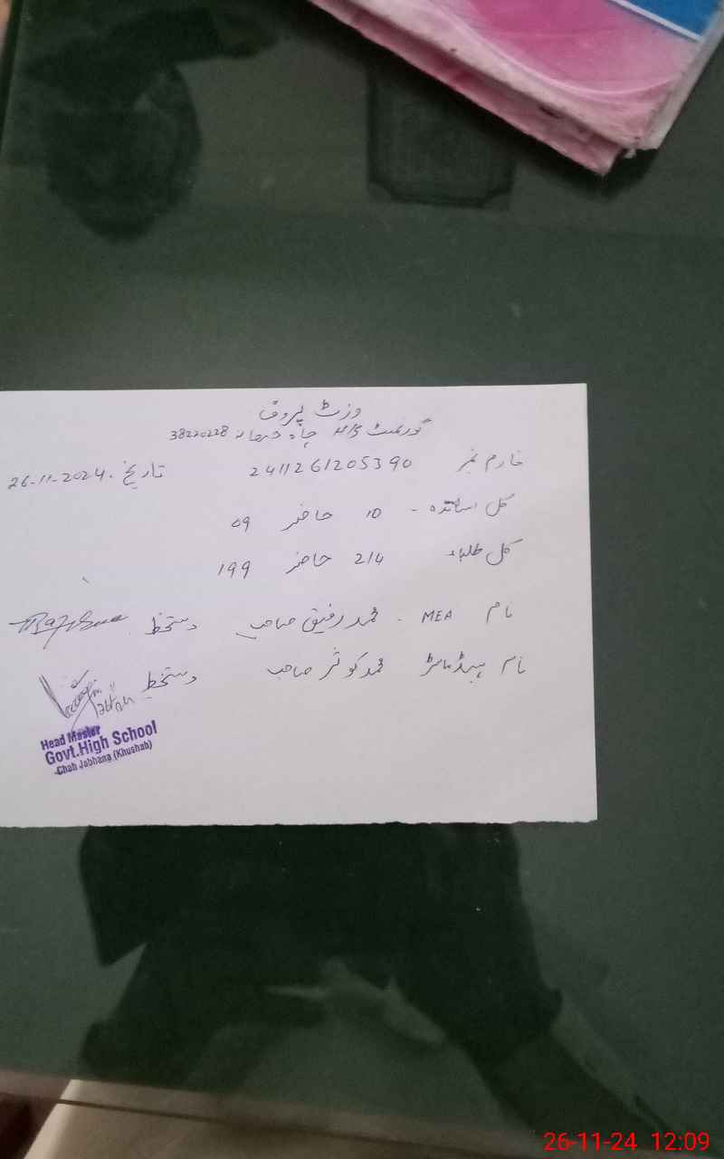 | EMIS Code: 38220228 | Name of School: GHS CHAH JABHANA RANGPUR | |||