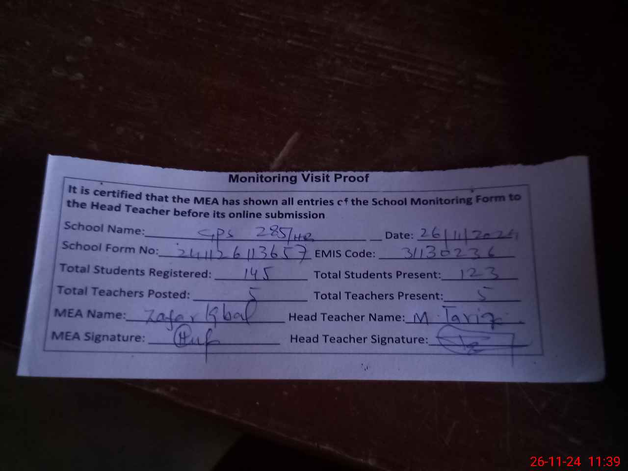 | EMIS Code: 31130236 | Name of School: GPS CHAK NO 285 HR | |||