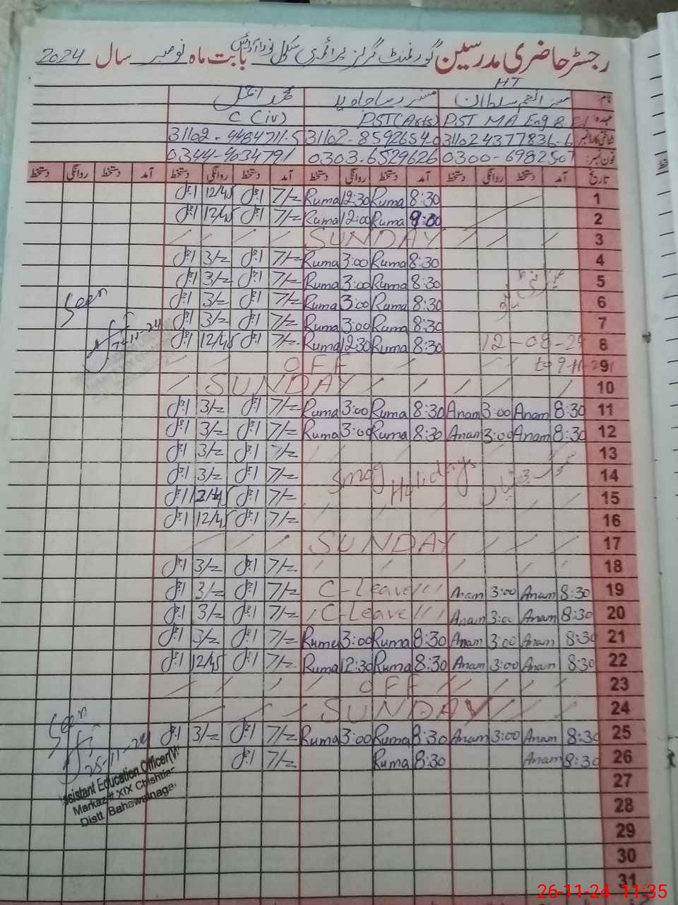 | Name: An**** Su**** Designation: (School Headmaster's/Headmistress's) PST Phone/Cell Number: 03**** |