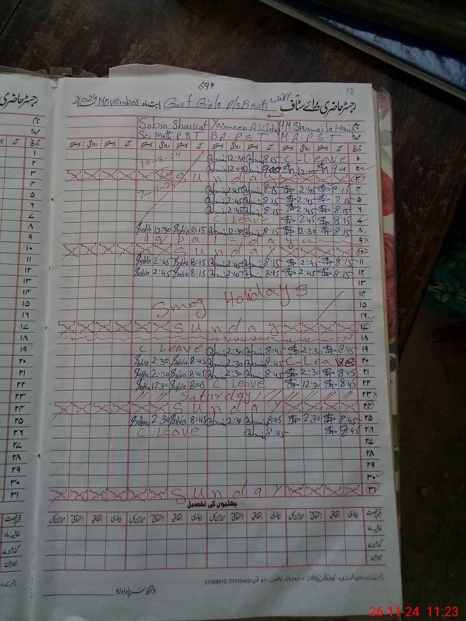 | CNIC | Full Name | Designation | R/C | Absence During Last Calender Month |