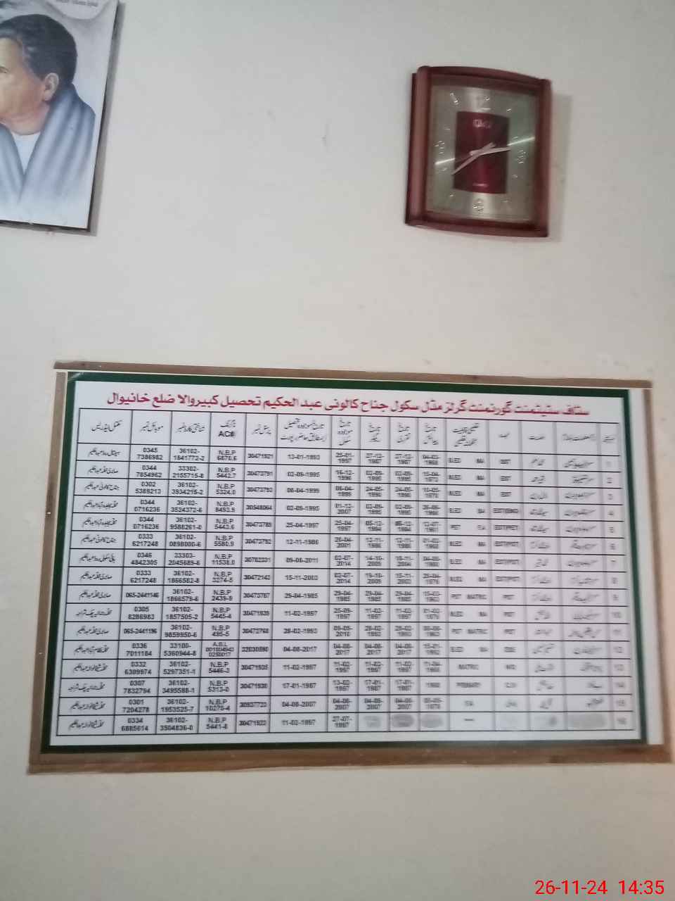 | Name: SH**** PA**** Designation: (School Headmaster's/Headmistress's) S.S.T.(general) Phone/Cell Number: 03**** |