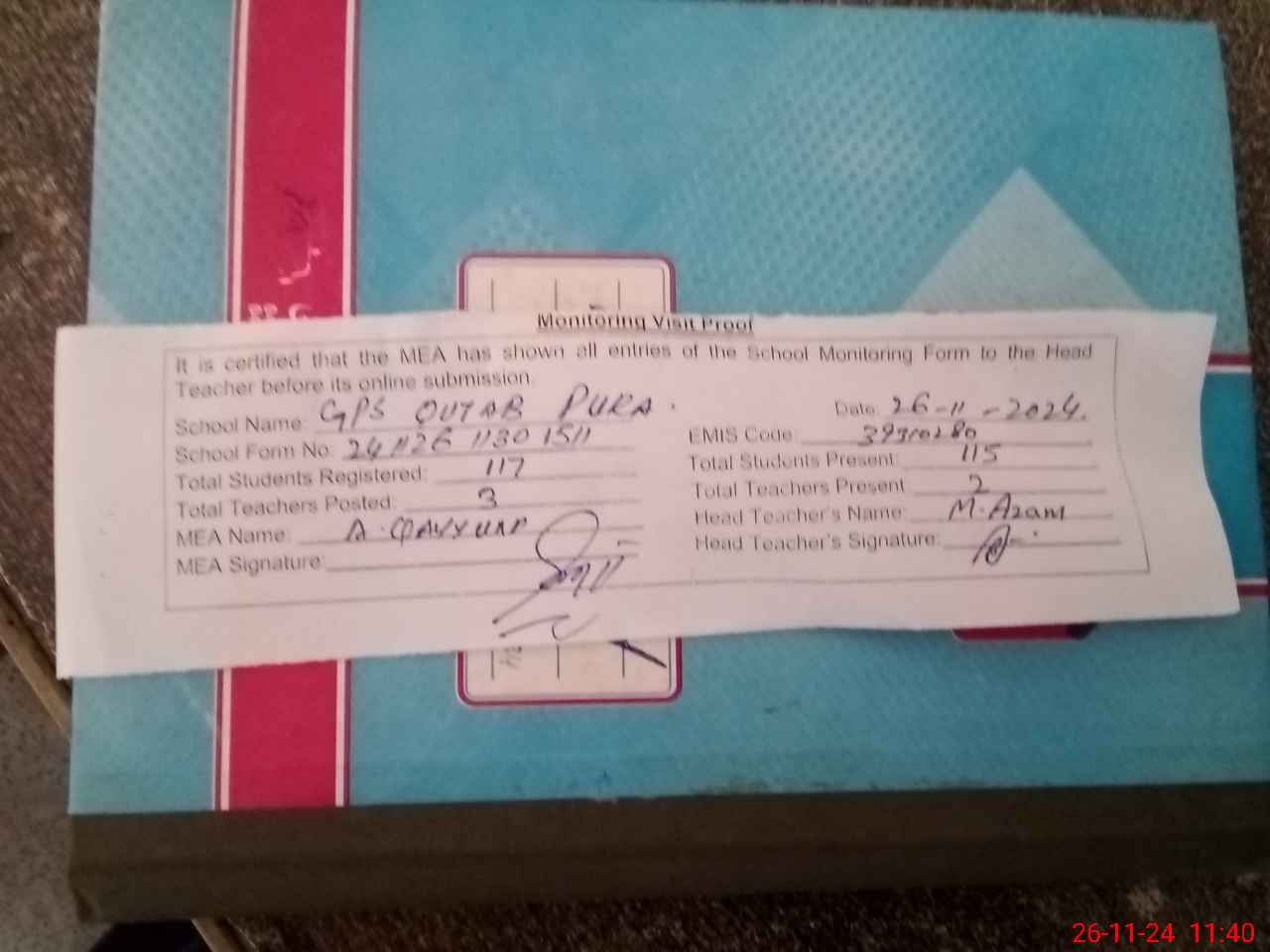 | EMIS Code: 39310280 | Name of School: GPS QUTAB PURA | |||