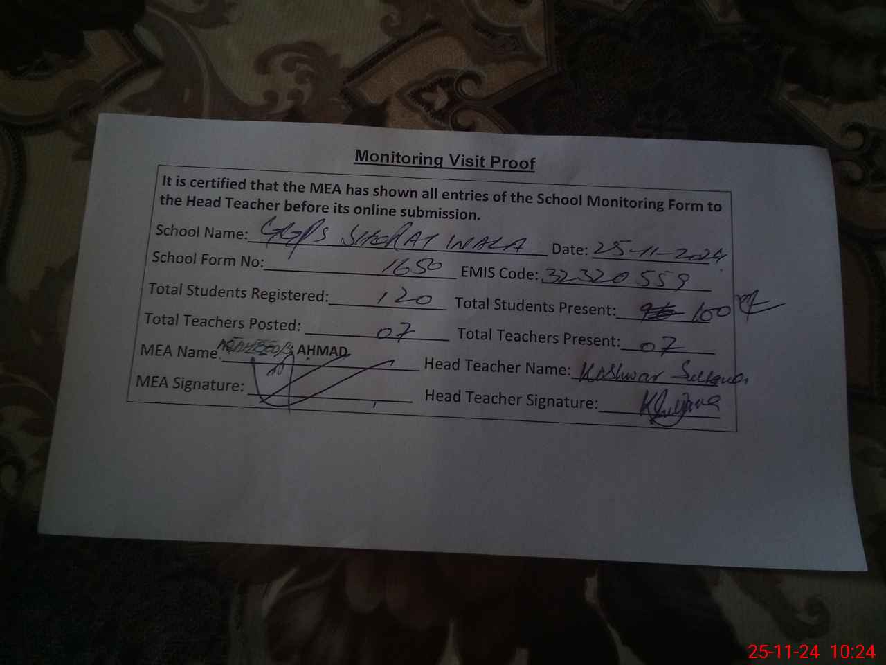 | EMIS Code: 32320559 | Name of School: GGPS SHOHRAT WALA | |||